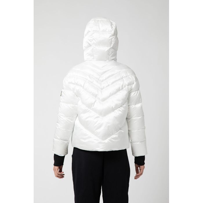 Piumino da donna con trapunte a “V”, con imbottitura ecologica e realizzata in tessuto nylon effetto metallico. Il capo è caratterizzato da zip in tono e tirazip brandizzato, cappuccio fisso, e logo istituzionale Ciesse Piumini. Il capo presenta all’interno del cappuccio la scritta Ciesse Piumini Active ricamata. I ricchi dettagli di stile contribuiscono ad enfatizzare l’aspetto femminile del modello Christa, che presenta un fit svasato dalle linee pulite e rappresenta la novità del gruppo thermo insulation donna.